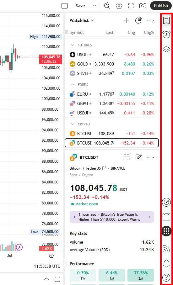 تریدینگ ویو (TradingView) یک پلتفرم جامع برای ترسیم نمودار و تحلیل طیف گستردهای از داراییهای مالی، از جمله ارزهای دیجیتال است.